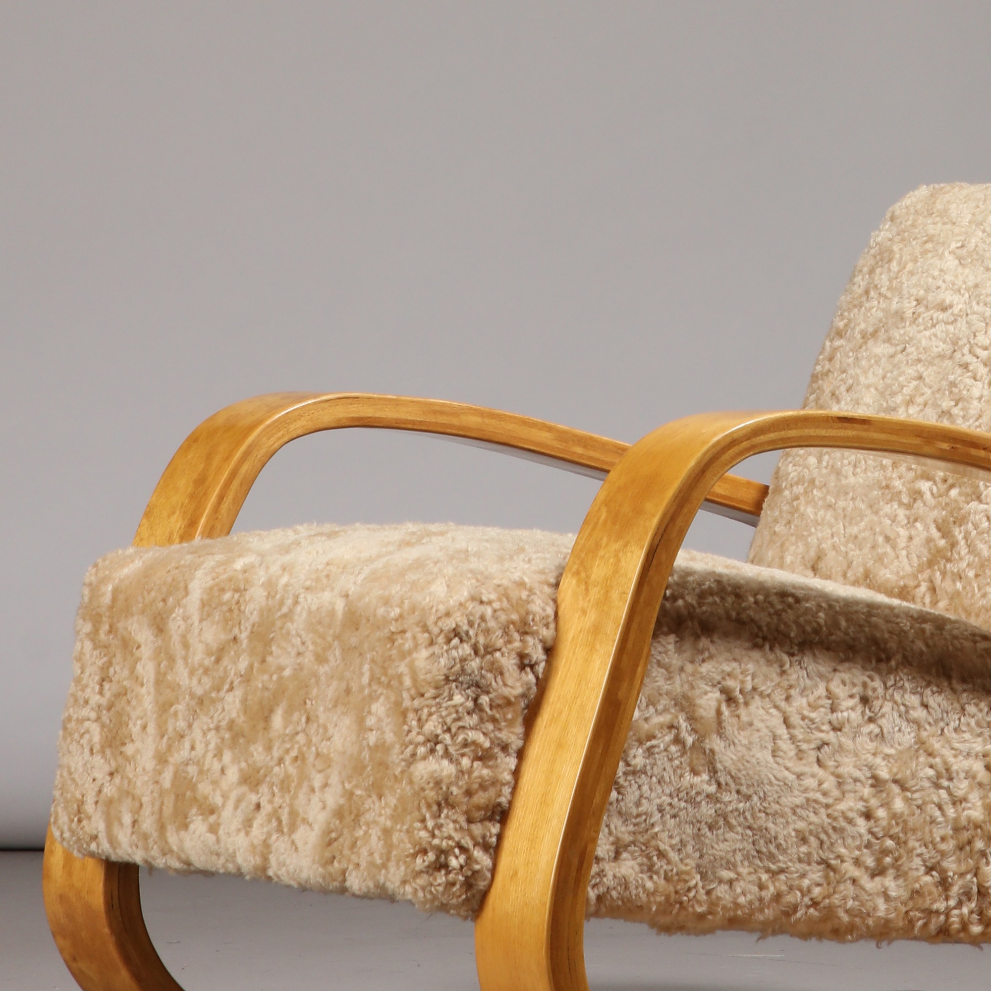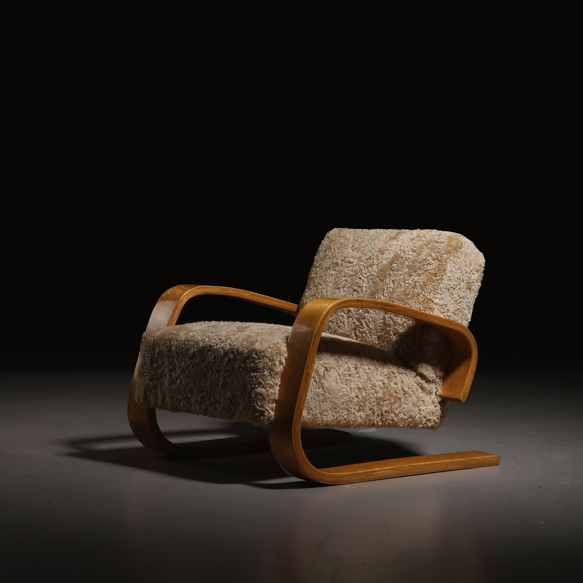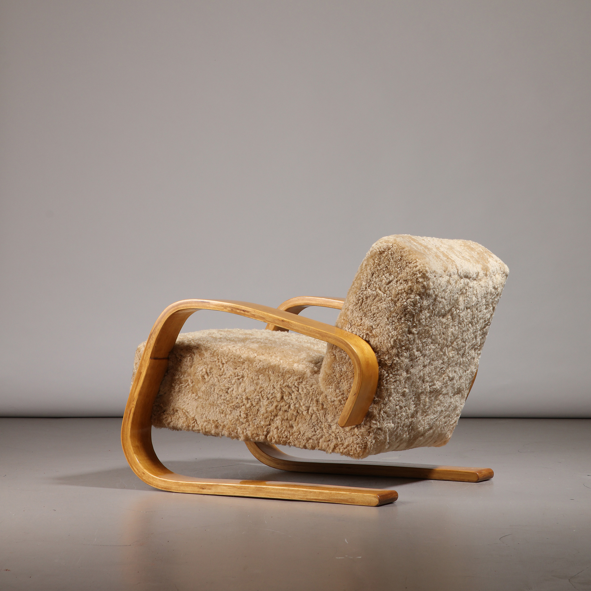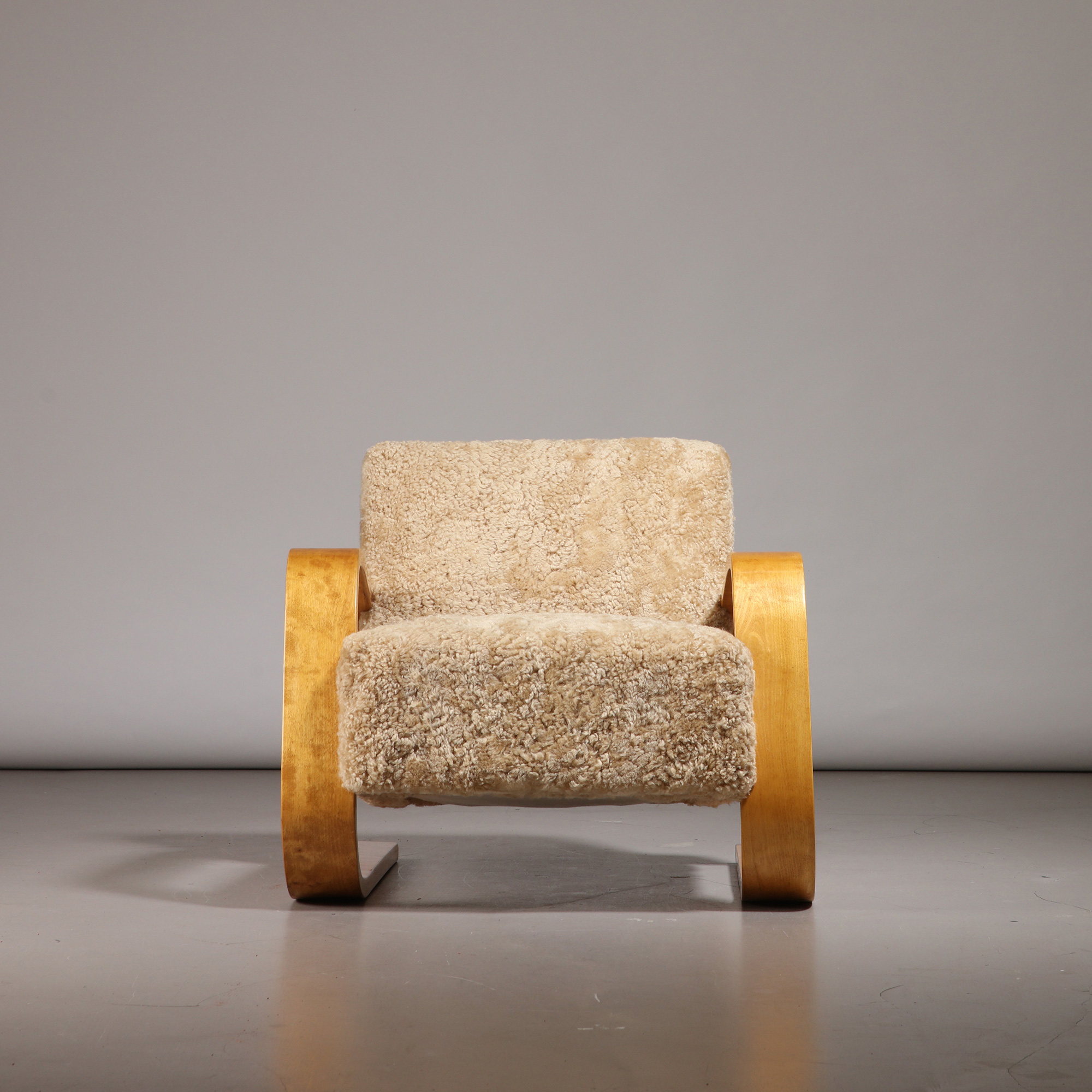 Alvar Aalto ‘Tank’ Armchair in Honey Sheepskin, 1940s