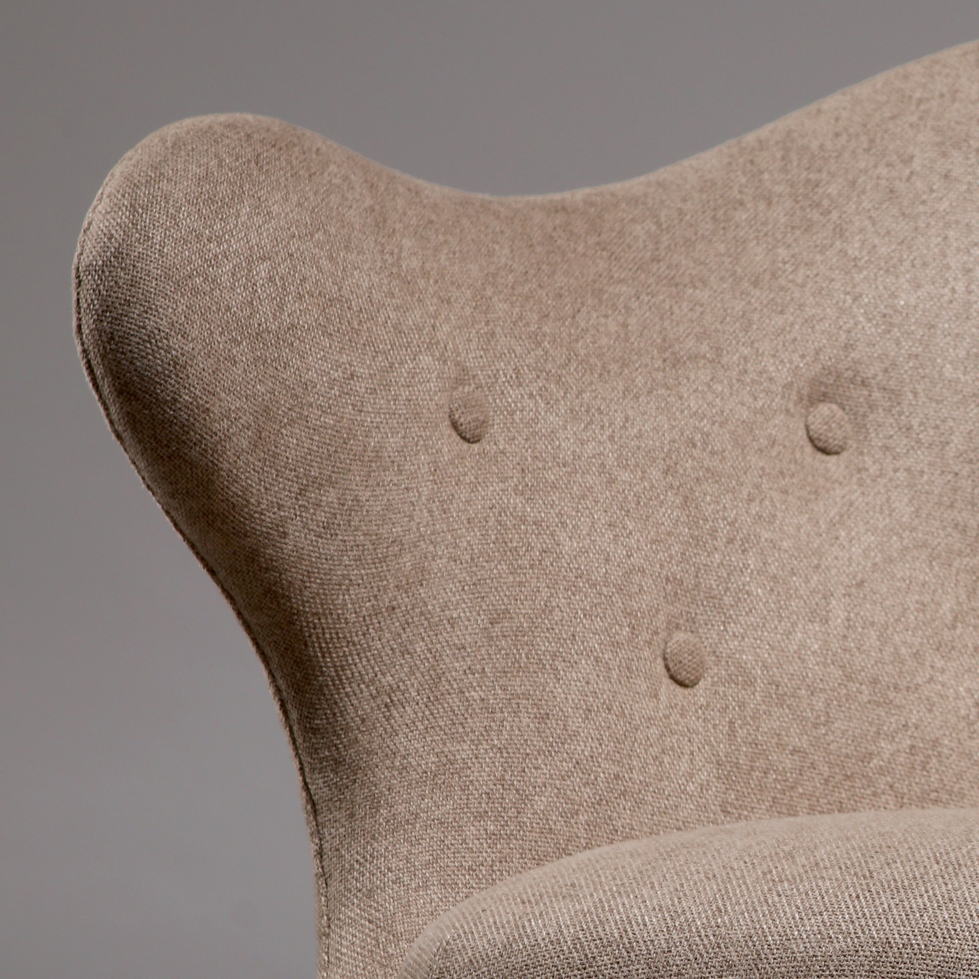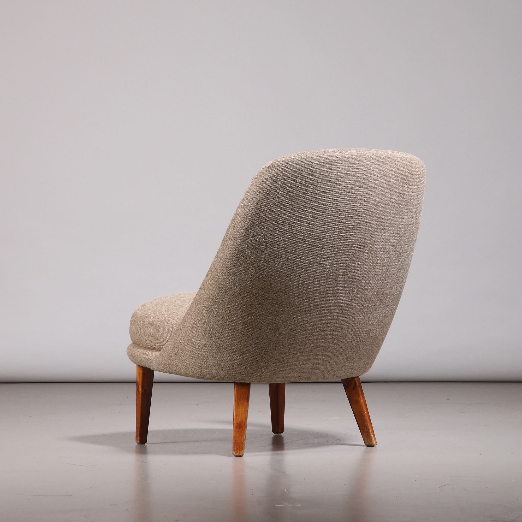 Designed by Swedish designer Arne Norell in 1952, this remarkable chair was presented the same year at the Önskehemsutställningen in Stockholm. Two years later, Norell established his own practice in Sundbyberg. The sculptural, thumb-shaped backrest is an immediate focal point, lending the chair both its distinctive silhouette and its name.