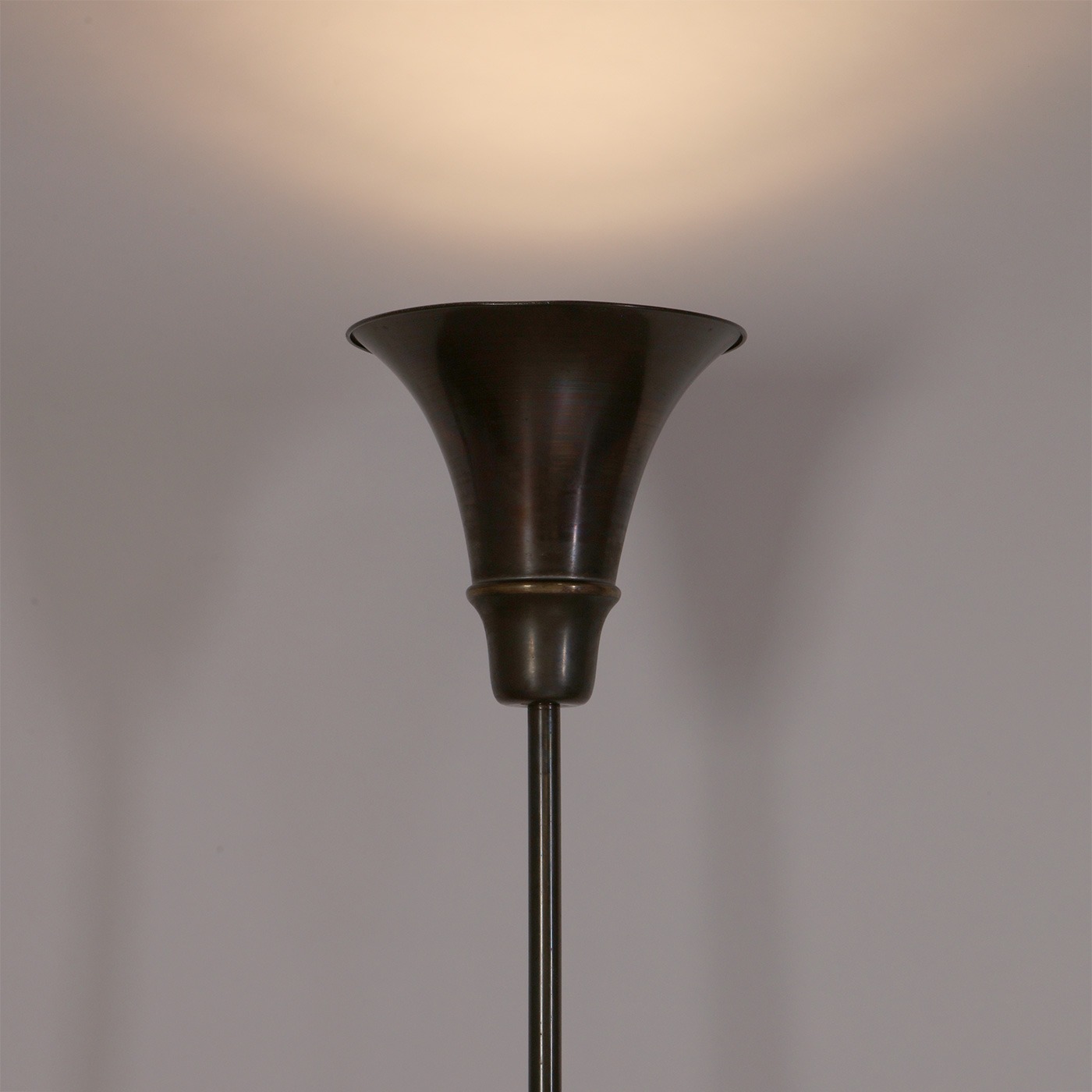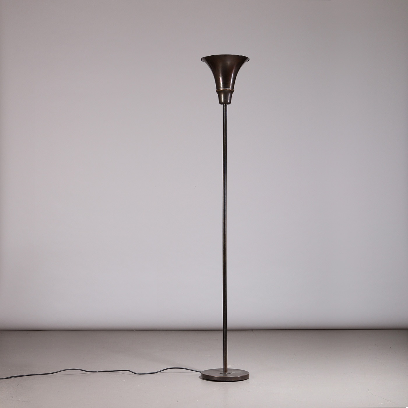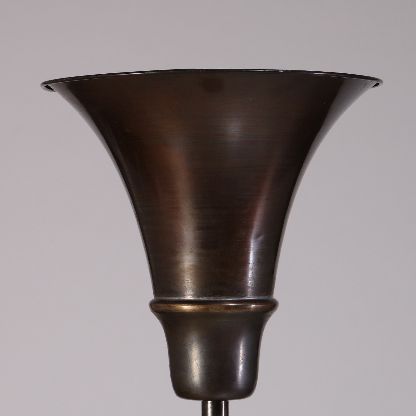 Large uplight floor lamp, produced by Fog & Mørup in Denmark, 1940s. Made from patinated bronze.