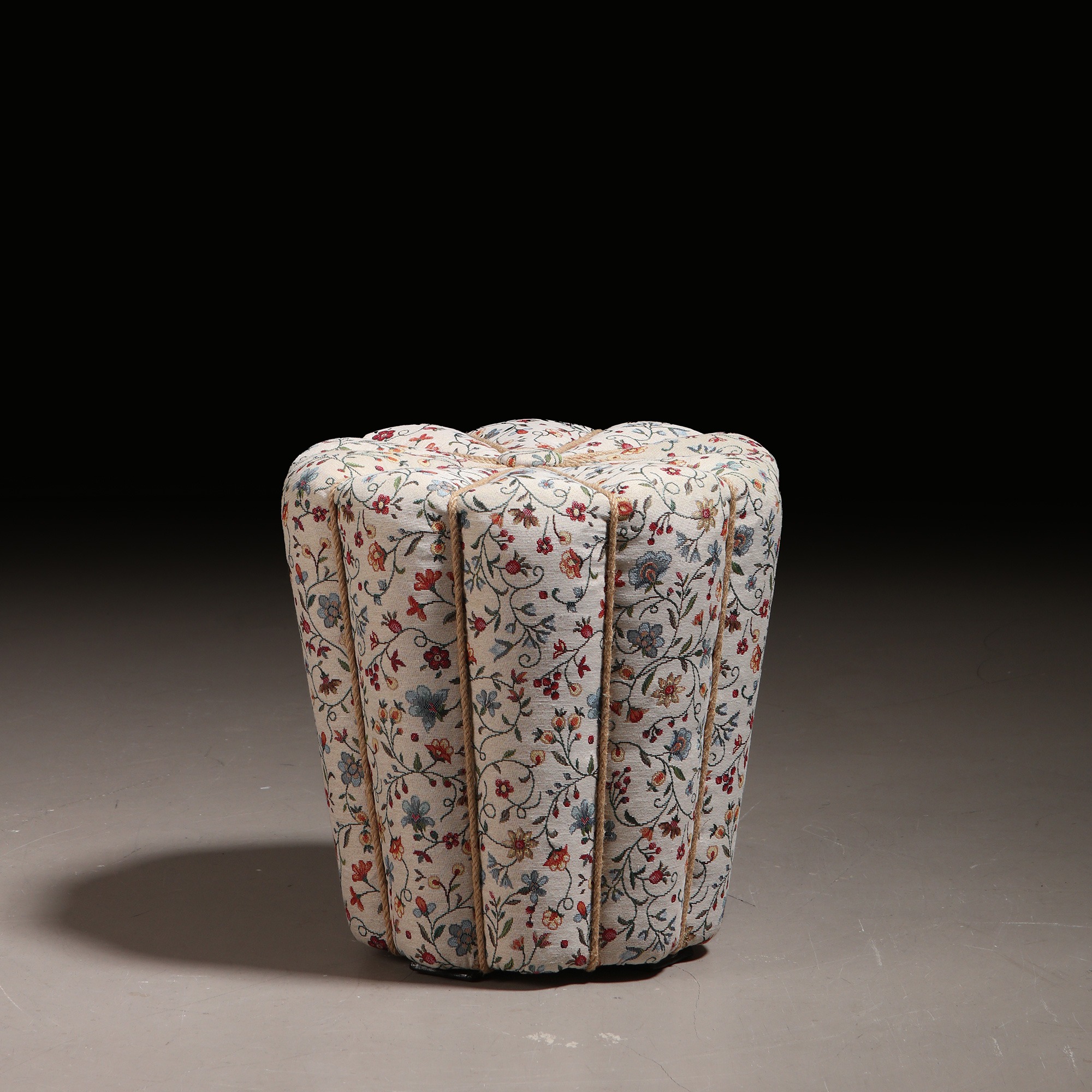 Art Deco stool, designed by Jindřich Halabala. Produced by Spojené UP závody Brno in former Czechoslovakia, 1930s. Recently reupholstered in floral tapestry fabric.